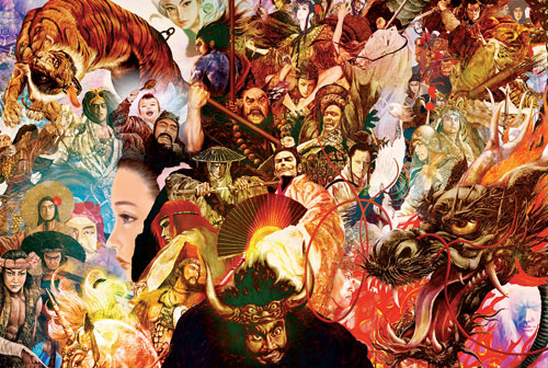 曾经应邀担任电影《无极》服饰和场景设计的正子公也在日本乃至亚洲地区插画迷中都享有极高的知名度,正子公也非常痴迷中国文化,因此在日本界享有日本插画师中的“中国通”的雅号。经过10年的精心创作,先后推出了知名作品《绘卷三国志》和《绘卷水浒传》,并得到业内一致好评。正子公也画风以写实为主,造型、用色、肌里表现都有一定特色,那为我们所熟悉的人物形象到了正子公也的笔下变得既亲切又陌生。他的作品中往往带有浓烈的东方幻想色彩并大胆融入东洋元素、涂染拼贴、浮世绘等等表现手法,并将传统的审美观念与现代视觉艺术完美的结合在一起,使得作品独具特色,并极具视觉冲击和观赏价值。