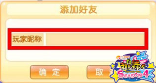 3.在“玩家昵称”后填入你想要加为好友的玩家昵称,“确定”完成好友添加