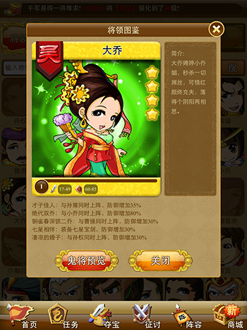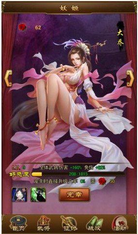 《妖姬三国》主打美女牌,用江山没人来吸引爱江山不爱美人的玩家。你可以用三国武将完成推倒大乔,宠幸小乔等无数三国豪杰想都不敢想的事情。所以,就算里面的三国武将都是大叔老头,咱们也就忍了,谁叫人家的妖姬能吸引咱们的雄性荷尔蒙呢?
